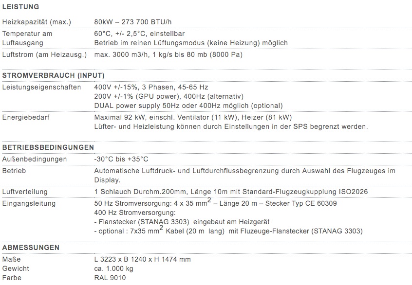 - Instead of an own diesel engine, this heater is connected to a GPU with sufficient power, for example, with 120kVA or more. Ground Power Units provide in park condition rarely more than 30-40 kVA to the aircraft, or when you start the full power is required – and then the heater has already been removed.